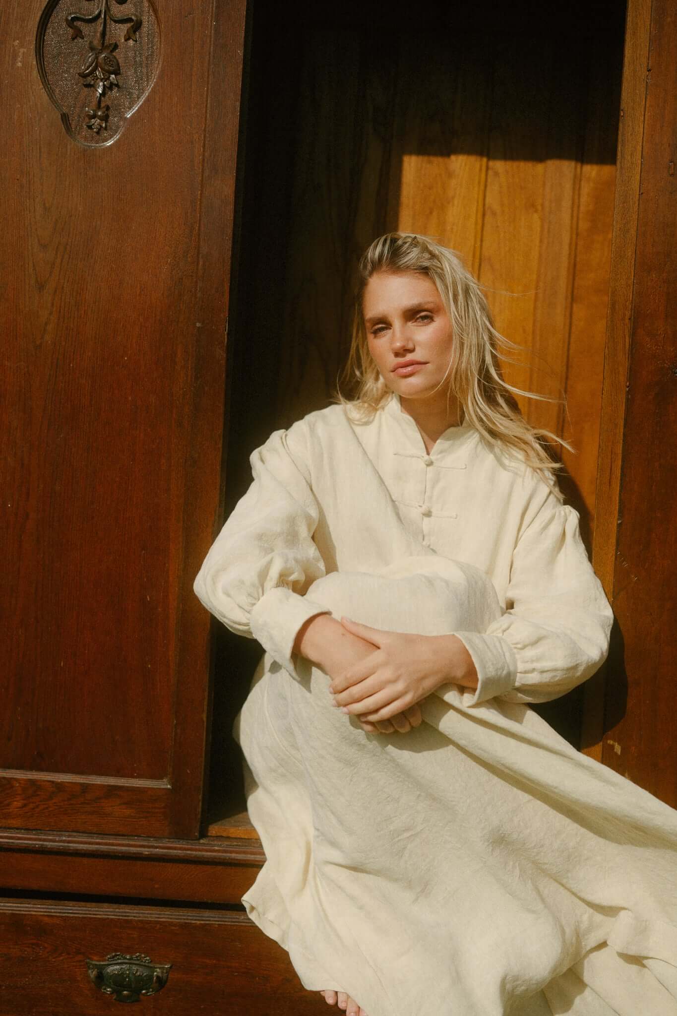 A cornerstone of The Quiet Kingdom, The Guard and Grace Dress captures the duality at the heart of the season – protective yet poised, strong yet soft. Its name speaks to its purpose: a guardian of quiet strength, a keeper of ceremony, a dress that moves with dignity and quiet confidence.