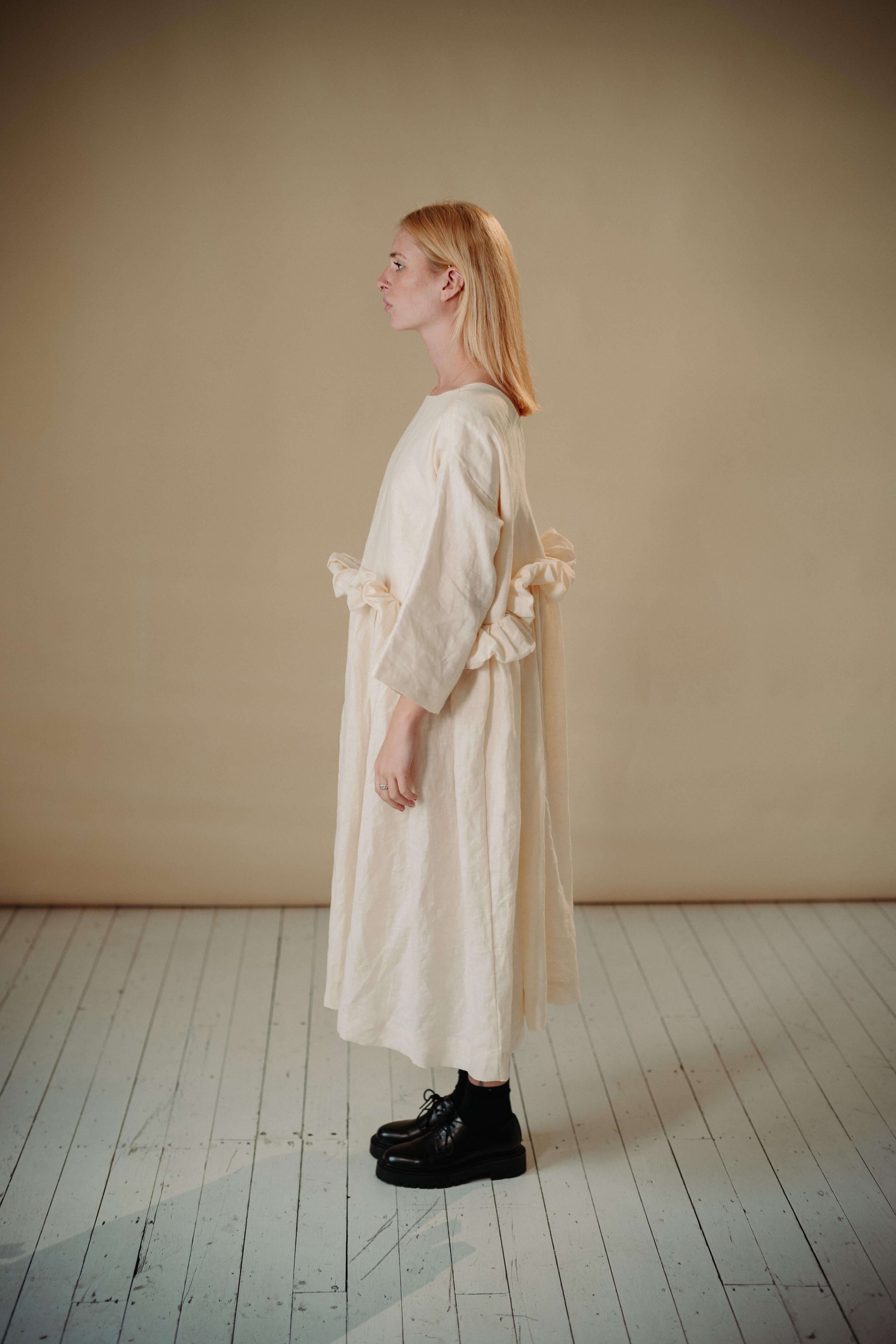 With its gathered waist detail and voluminous shape, this piece is as joyful to wear as it is to style. The mallow colourway is a calming, creamy neutral—offering an elevated everyday option that can be dressed up or down.
