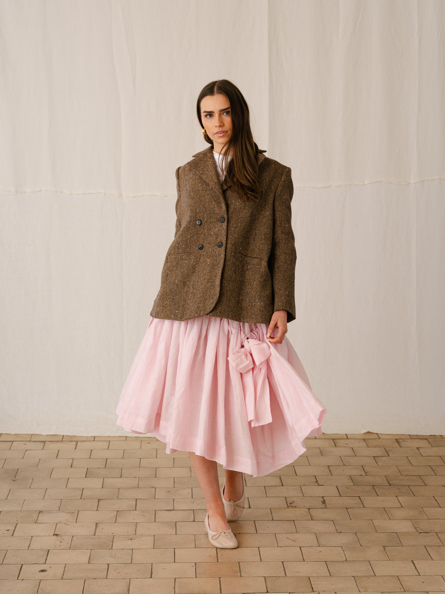 Following the popularity of our Tweed Jacket in navy, we are excited to offer it to you in Brown tweed, with tumbled black linen lining and signature bow.
