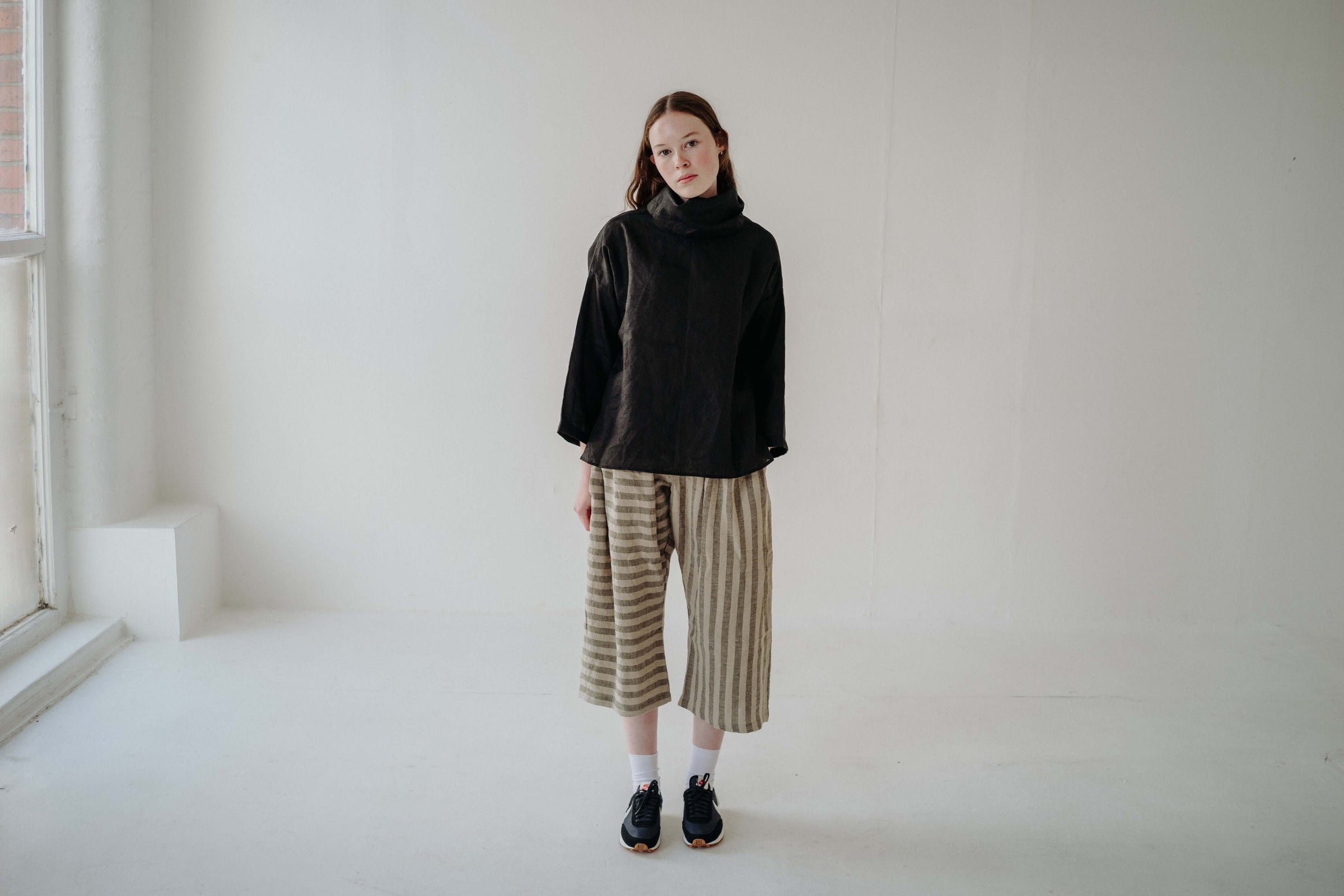 The Amelia trousers are a classic wide leg fit. Featuring a play on stripe direction - they will add playfulness and fun - integrating effortlessly into your existing wardrobe. Created with our custom, striped linen which is beautifully soft to touch and a joy to wear through the warmer months.