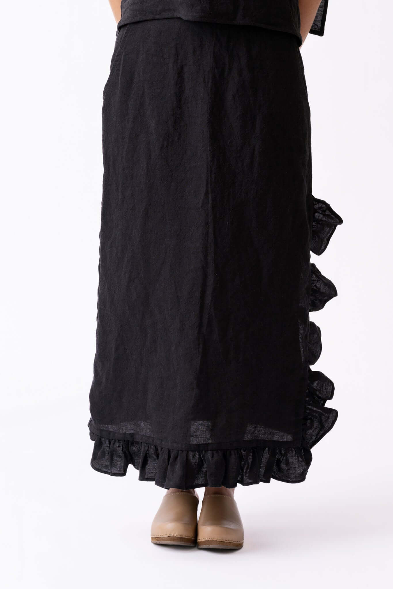 The Mia Skirt is a fresh addition to our SS25 collection, blending classic structure with a playful edge. Made in our soft tumbled black Irish linen – the same fabric as the Mia Top – Mia offers a relaxed elegance that’s effortlessly wearable.