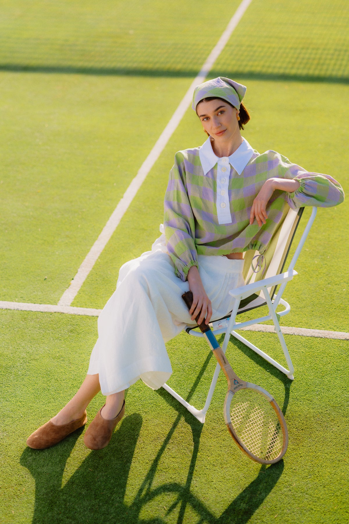 Crafted in a tumbled ivory Irish linen, the silhouette wraps softly around the body and fastens with a generous tie at the waist, giving it a sense of ease and adjustability. There is something timeless in its simplicity, while the fullness and length bring a quiet drama when worn. It is a piece designed to move easily through the season, from slower mornings to long afternoons outdoors, and all the life that happens in between.
