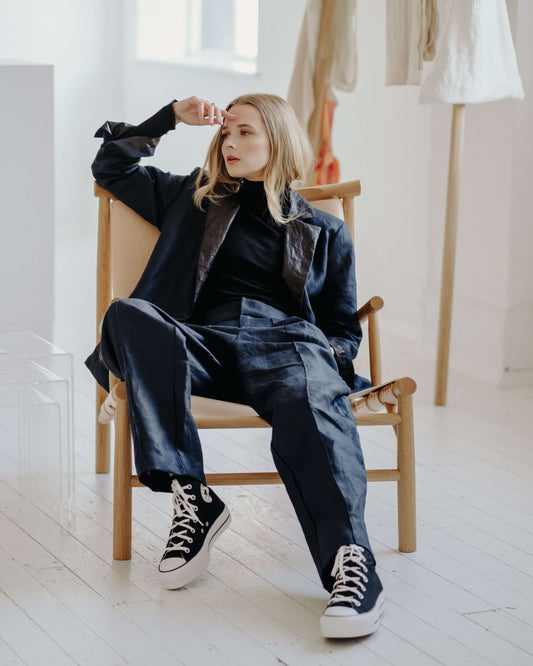 Our Irish linen tailored pieces are made to order with tracked international delivery.