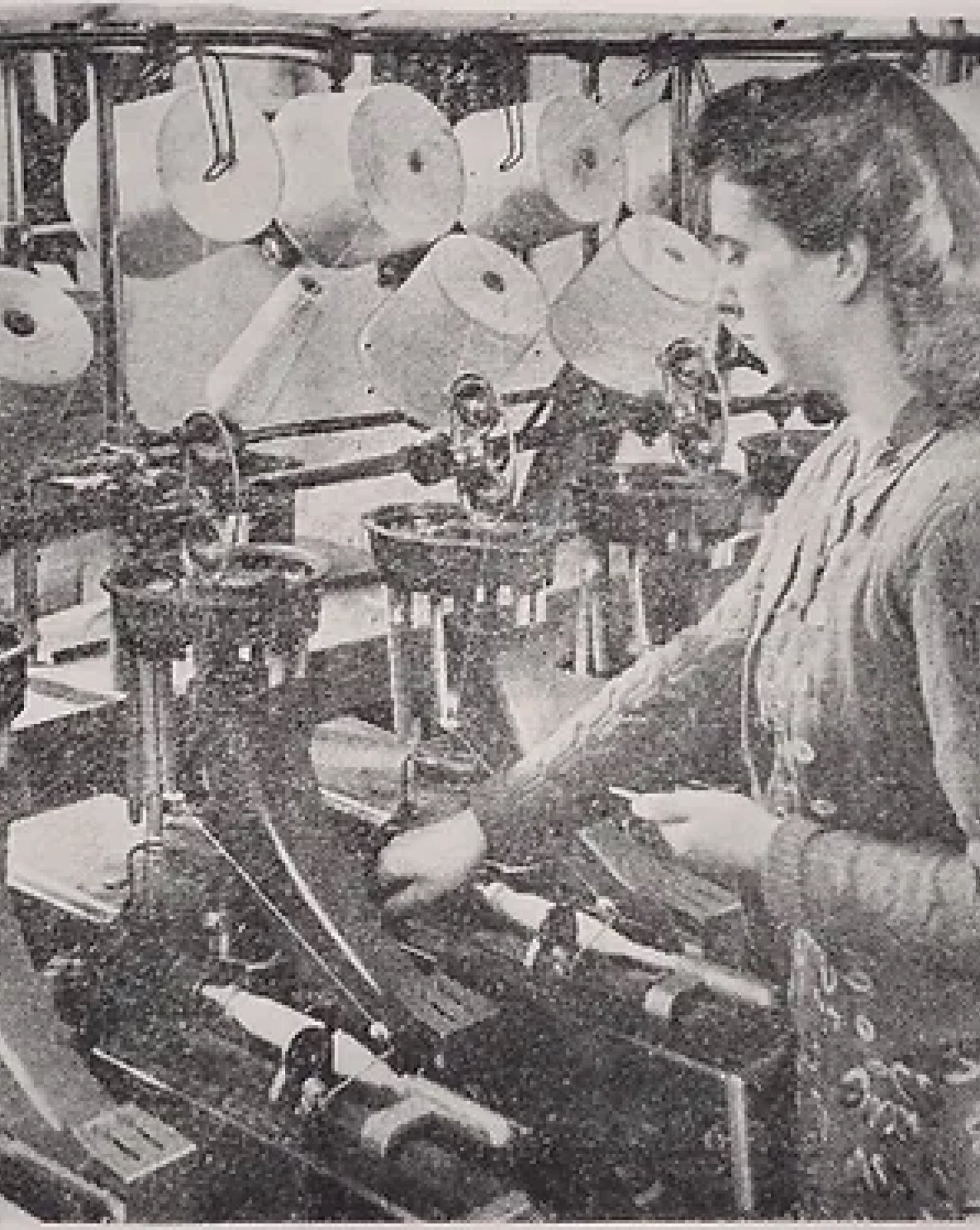 On discovering an old photograph of her grandmother Winnie (pictured) spinning yarn at Moygashel mill, she felt a calling to return to these roots and continue her family’s heritage by creating her own Irish Linen brand.With Kindred Of Ireland, she celebrates her affinity with the textiles industry and continues her family’s story with her contemporary yet classic designs.Using expert craftsmanship and artisanal techniques such as beetling and combining this with a functional yet graceful aesthetic, Kindred Of Ireland is true to Amy’s muse of marrying the old with the new to weave a linen story that’s in tune with our times.