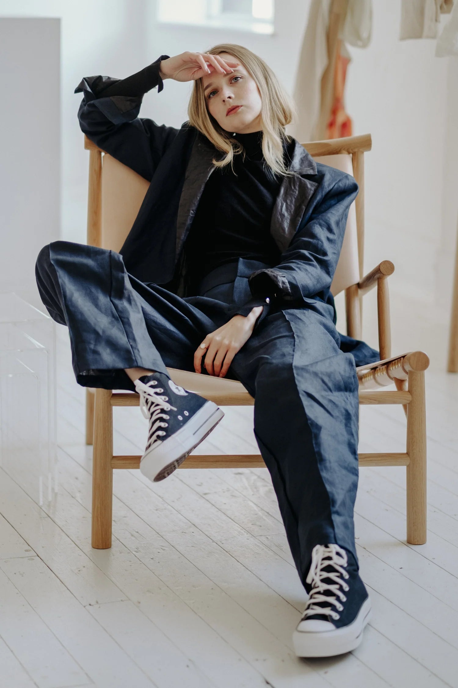 Linen also becomes more beautiful with age, getting better over time. It is known as the strongest of all natural fibres, ensuring each garment will last for years to come. All of our fabric is sourced locally here in Ireland, which cuts down massively on our carbon footprint and also supports local industry. As we are a small brand, we work with small order quantities to reduce waste where possible.