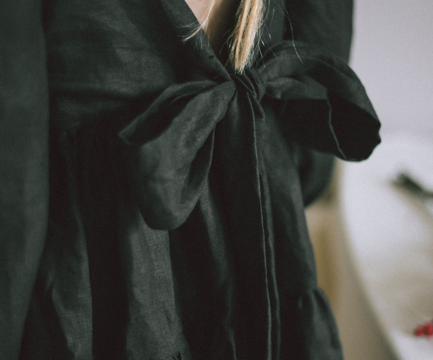 Central to our commitment to sustainability is our fabric of choice: linen. Linen's story starts with the resilient flax plant. Thriving in poor-quality soil, requiring far less water than crops like cotton, and tolerant of a natural environment free from chemicals and pesticides, flax sets the foundation for an eco-friendly fabric.But the sustainability of linen doesn't stop with how it's grown—it carries through the entire lifecycleof the fabric. Every part of the flax plant is used, from the long, strong fibers that are woven into linen, to the seeds that provide oil for various purposes, ensuring minimal waste and a circular economy.Linen is also breathable and biodegradable, completing the cycle from nature back to nature. It allows the skin to breathe, is hypoallergenic, and at the end of its lifecycle, it returns to the earth, leaving no trace behind.The durability of linen is another aspect that enhances its sustainability. Unlike synthetic materials which degrade over time, linen is known for its exceptional durability, strength, and longevity.Remarkably, linen garments not only last but get better with age. Each wash and wear makes the fabric softer and more comfortable, enhancing its natural beauty and texture.
