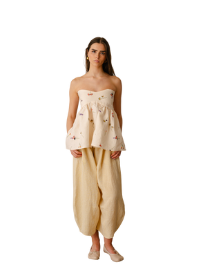 A celebration of softness, femininity and the quiet romance of nature. Inspired by wild blooms, sun-warmed afternoons and the beauty of slower living, the collection brings together airy Irish linen, delicate detailing and gentle, garden-inspired tones.