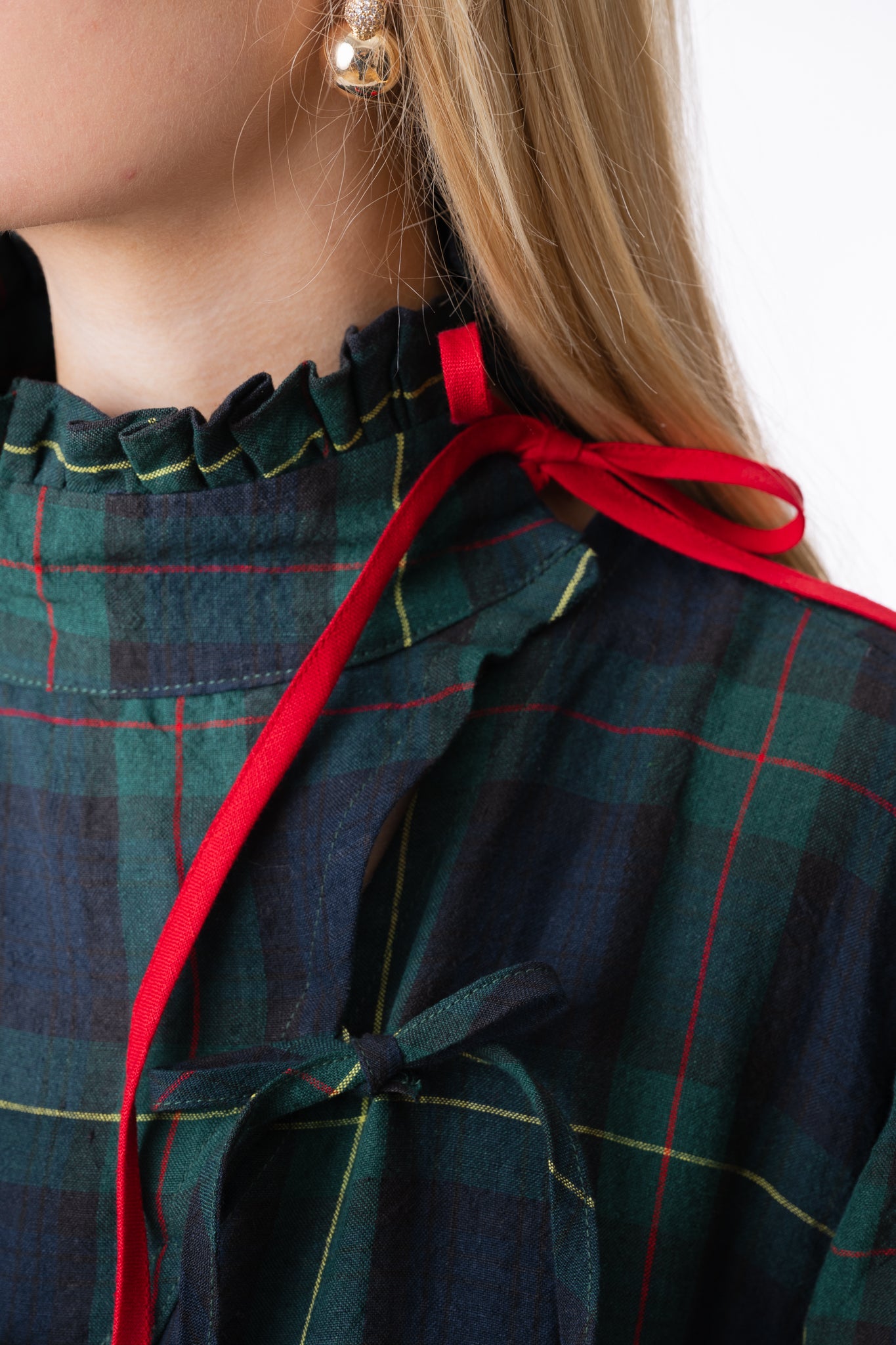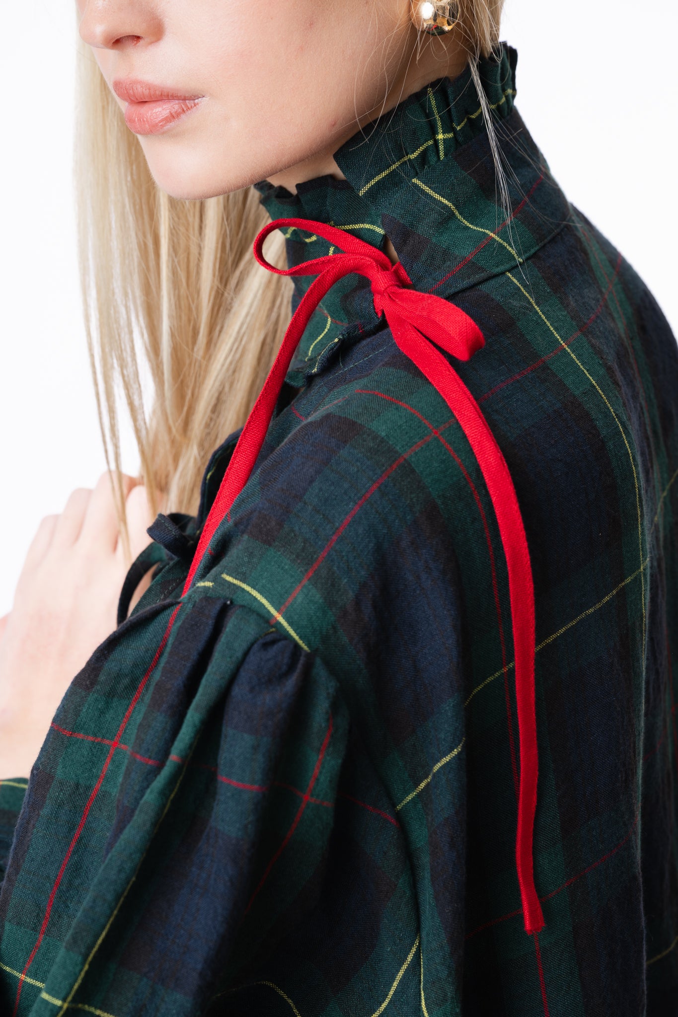 A playful red bow at the collar adds that unmistakable Kindred touch, a little spark of winter magic against the deep festive check. Pair it with ballet flats, heels or boots for a look that moves effortlessly from fireside gatherings to evenings out.
