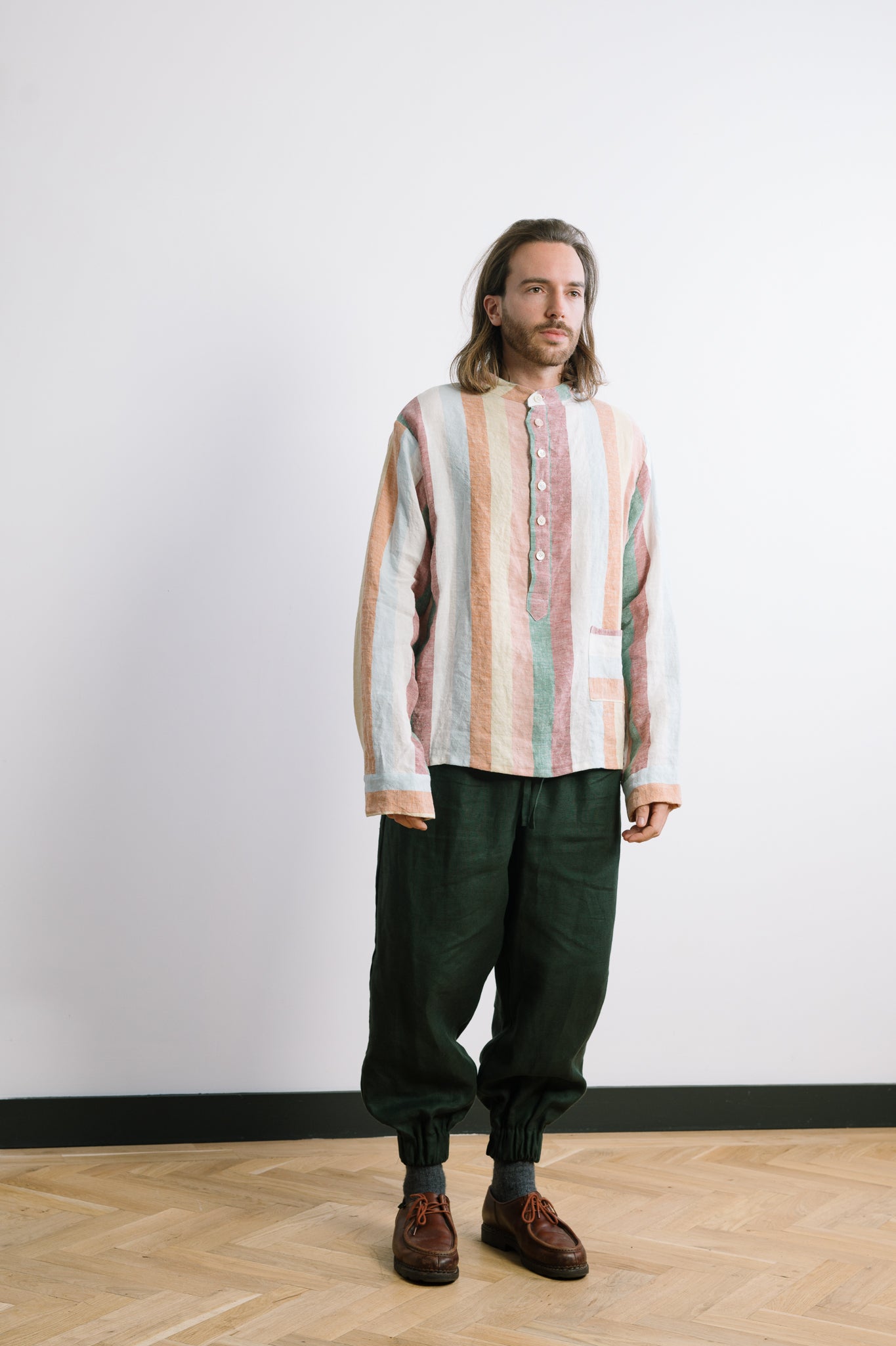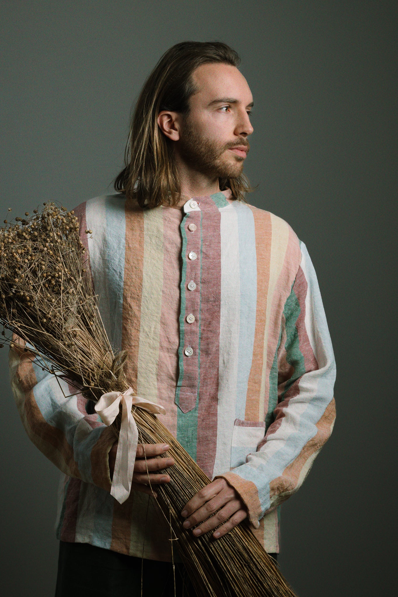 The Maverick Shirt in Winter Stripe is a fresh interpretation of classic menswear, designed to capture a spirited yet refined aesthetic. Its stripe pattern in muted winter hues makes it an ideal choice for those looking to add some soft colour and pattern to their wardrobe without overwhelming.