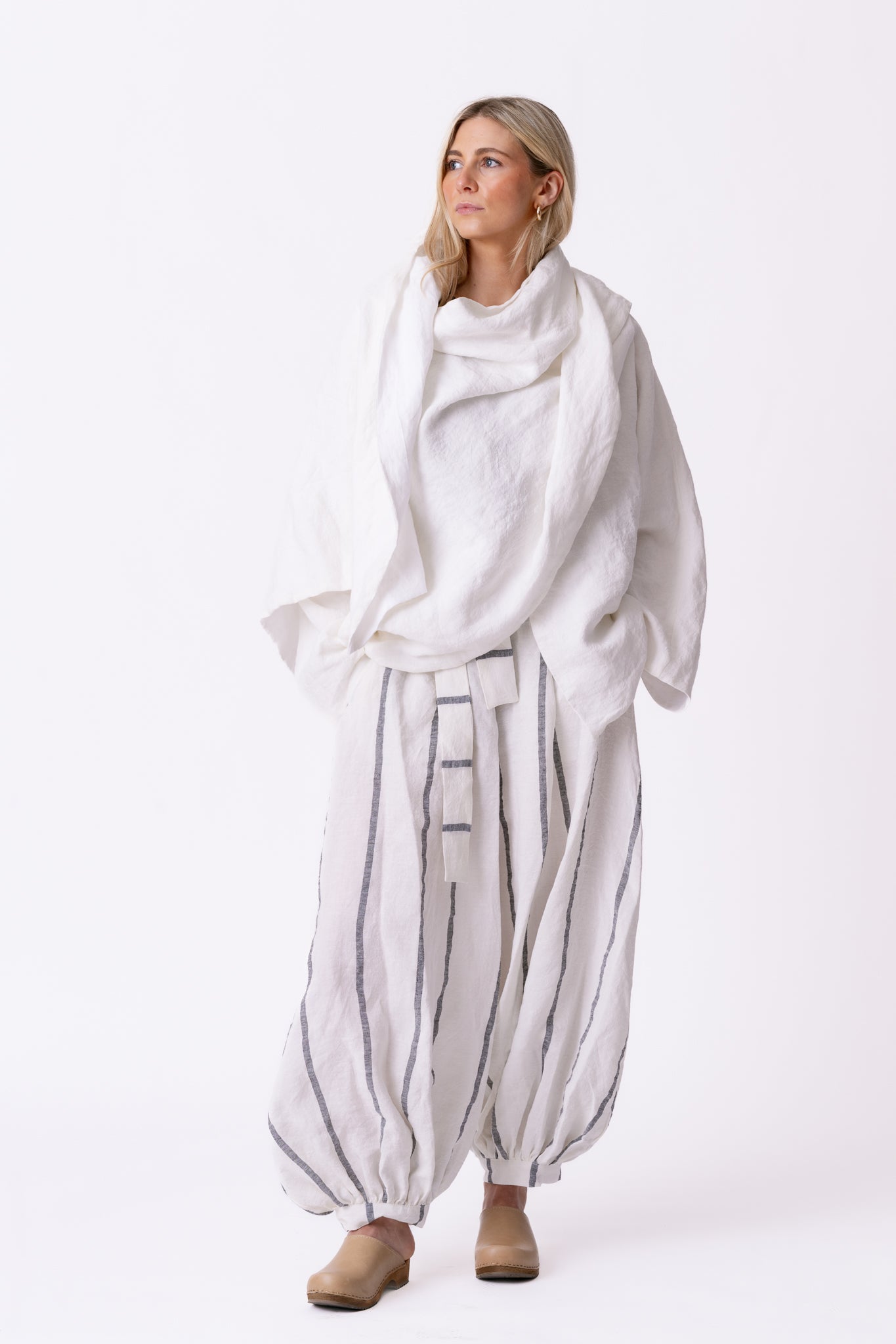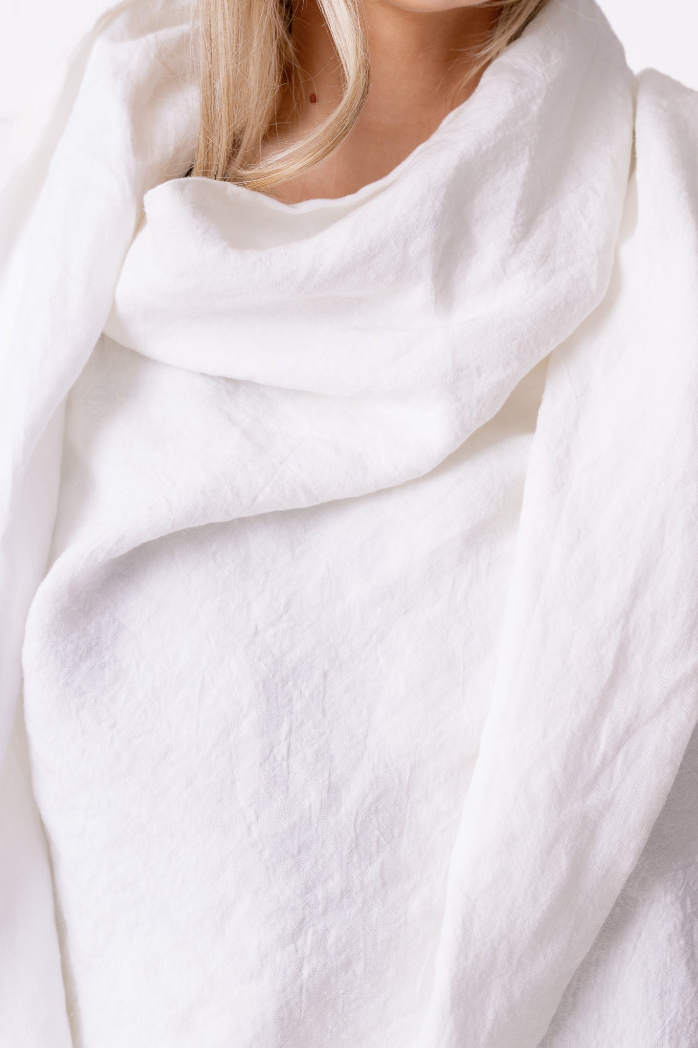 Our AW25 interpretation honours that history while making it deeply modern. Crafted in reversible tumbled Irish linen — Ivory on one side, White on the other — it moves effortlessly from day to dinner, from soft daylight to candlelit evening.