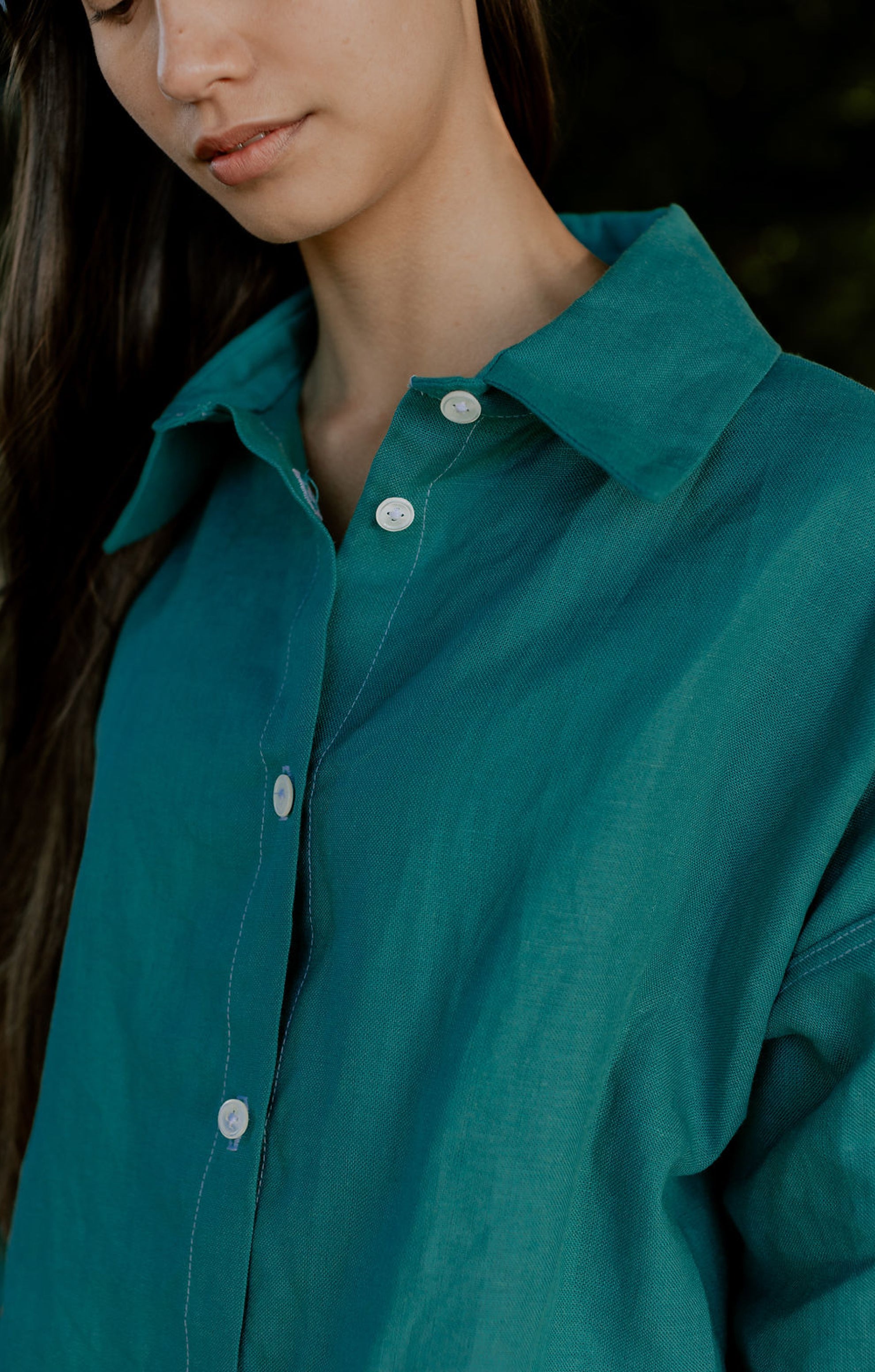 Producing linen fabric from the flax plant uses far less water than it takes to produce the same amount of cotton. The flax plant itself can be used for multiple purposes, leaving absolutely no waste as every part of the plant has a function. These attributes make Irish linen one of the most sustainable and environmentally friendly fabrics to use and wear. Linen also becomes more beautiful with age, getting better over time. It is known as the strongest of all natural fibres, ensuring each garment will last for years to come. All of our fabric is sourced locally here in Ireland, which cuts down massively on our carbon footprint and also supports local industry. As we are a small brand, we work with small order quantities to reduce waste where possible.
