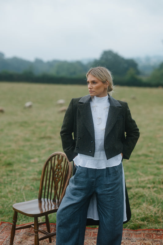 Behold —a bridal collection inspired by playful childhood dreams of your most special day—reimagines bridalwear through the timeless beauty of Irish linen, with each piece lovingly handmade on our island. Delicate crochet, the magical sheen of beetled linen, and unexpected texture, pay tribute to and reimagine a proud legacy.